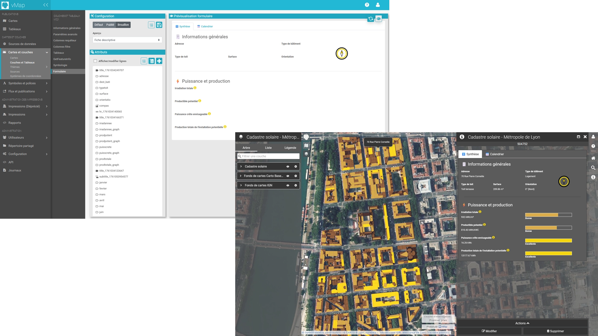 Vos utilisateurs peuvent ainsi consulter et actualiser les entités sur une carte vMap2, remplir le formulaire d’édition que vous avez personnalisé, et valider la mise à jour de l’enregistrement sélectionné.